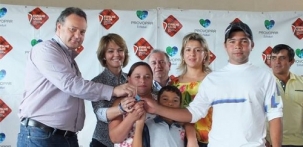 Em Altamira do Paraná (foto), ela participou com a prefeita Elza Aguiar da entrega de 30 casas populares.