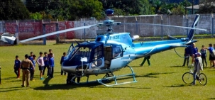 Olha aí o helicóptero utilizado nesta quinta-feira pela primeira-dama do Estado, secretária Fernanda Richa (Promoção Social), durante visita à região. O blog "SOS Roncador" concluiu que o custo da viagem ficou mais caro que os cobertores entregues pelo Provopar. A foto é de Roncador, mas Fernanda também esteve em Altamira do Paraná, Campina da Lagoa e Nova Cantu. Ô dureza...