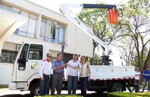 Demorou, mas a prefeitura comprou um caminhão adaptado para o trabalho de troca de lâmpadas dos postes de rua. Ufa! A entrega aconteceu nesta segunda-feira, com a presença da prefeita Regina Dubay e tudo. O Ford Cargo custou R$ 214 mil. Desde o começo do ano a prefeitura vinha fazendo o serviço com um caminhão locado. Hummmmm...