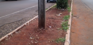 Foto tirada nesta quinta-feira, dia 28, na av. Irmãos Pereira, centro de Campo Mourão. Começaram o serviço há muito tempo e até agora não terminaram; o mato cresceu; a terra emporcalha a nossa cidade. Esse serviço deve ser concluído no mesmo dia ou no máximo no dia seguinte. Fraterno Maria Nunes