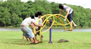 "Li no Bosa Santa que será investido R$ 100 mil na reforma dos brinquedos infantis. A foto é da API (Academia da Primeira Idade). É comum esses "brinquedos" (tanto os da academia quanto os balanços e escorregadores) serem usados por marmanjos e marmanjas bem rechonchudos para fazerem fotos e videos. Assim não há nada que aguente".
