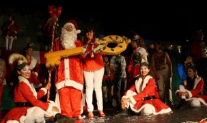 Teve chegada do Papai Noel neste domingo em Campina da Lagoa. O "bom velhinho" recebeu a chave da cidade das mãos da prefeita Célia Cabrera e tudo. O evento foi realizado no Parque da Lagoa e contou com show de fotos de artifício para marcar o acendimento da decoração natalina. A encenação do Papai Noel foi feita pela pessoal do Espaço Sou Arte, da mourãoense Edilaine de Castro. E cá pra nós: magrinho esse Noel, hein?...
