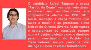 O PT de Campo Mourão elegeu seu novo presidente neste domingo com o tradicional bate-chapa. No Partido dos Trabalhadores é sempre assim. Sem essa de consenso ou aclamação. E bate-chapa, já viu, sai faísca. Depois a paz volta a reinar. Nesta segunda-feira, por exemplo, o candidato derrotado, Aníbal Tápparo, divulgou mensagem de apoio ao presidente eleito Nelson de Oliveira Álvares. E viva a democracia!...