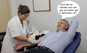 Quem disse que político não dá o sangue? O deputado Douglas Fabrício deu. Literalmente. Ele foi nesta sexta-feira ao Hemonúcleo de Campo Mourão para fazer a doação. “Vale a pena você dispender alguns minutos do seu tempo e, estando em condições, poder contribuir para salvar vidas. O que nos custa tão pouco não tem preço para quem está necessitando”, frisou. E se o sangue for pra um eleitor do 23, então, né?...