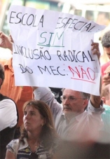 Um dos cartazes foi levado pelo presidente da Apae de Campo Mourão, o ex-prefeitável José Turozi (foto, tasabendo.com).
