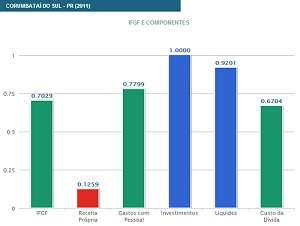 Corumbataí do Sul se destacou em "investimentos", ficando em 1º lugar no Paraná, com a nota máxima (veja gráfico).