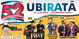 A promoção é da Arena Eventos e da Sociedade Rural de Ubiratã.