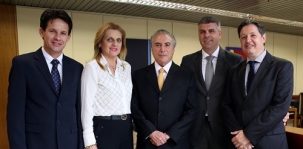 O tour da prefeita Regina Dubay por Brasília inclui, nesta terça-feira, uma audiência com o vice-presidente da República, Michel Temer. O secretário da vice-presidência, Rodrigo Rocha Loures e os vereadores Edílson Martins e Toninho Machado acompanharam a visita. Regina falou das potencialidades do município e das parcerias com o governo federal. E o vicee-presidente não falou mal do governo, falou?...