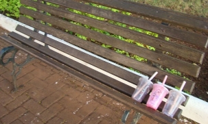 "Apesar das muitas lixeiras que existem nas praças São José e Getúlio Vargas, tem gente que frequenta o local e acha mais fácil deixar os copos do milk shake em cima dos bancos. Custava ter levado à lixeira mais próxima?".