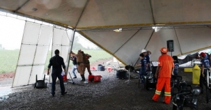 Parte da tenda montada pra proteger o público foi derrubada.