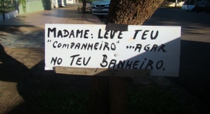 "Na rua Santa Catarina, entre as avenidas Manoel Mendes de Camargo e Goioerê, o morador encontrou uma forma bem direta de evitar que o jardim de sua calçada vire banheiro de cachorro de madame".
