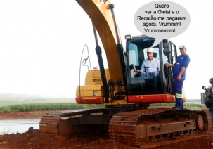 O clic é desta sexta-feira, em Engenheiro Beltrão, onde o governador Beto Richa foi ver de perto o início da duplicação da rodovia entre Campo Mourão e Floresta. Como manda o protocolo para esse tipo de evento, ele se fez de operador de máquina e deu lá suas "pazadas". Tá pensando o quê!...