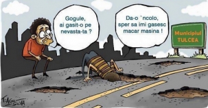 Se você não entende romeno, nem tente ler a charge acima, mas a assinatura no canto inferior esquerdo não deixa dúvidas: é sim um trabalho do mourãoense Tiago Silva. A charge publicada originalmente no jornal "Correio do Cidadão" foi pra internet e acabou ganhando uma versão na Romênia (é o próprio Tiago quem disse que isso é romeno). E cá pra nós: pelo visto o problema dos buracos de rua vai além do Atlântico...