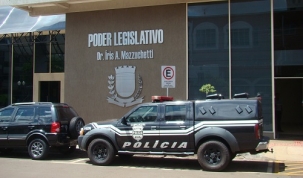 Bem na hora que a imprensa toda de Campo Mourão estava na Câmara para a coletiva com o vice-prefeito Rodrigo Salvadori, olha só o que estacionou em frente ao legislativo: um camburão da Polícia Civil. Mas calma. O veículo foi só levar um preso para atendimento numa clínica ali por perto. Ufa!...