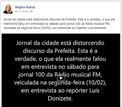 Na tarde desta terça-feira, postou no Facebook que "jornal da cidade" distorceu sua entrevista.
