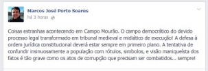 A afirmação é do promotor Marcos Porto Soares em postagem no Facebook, nesta terça-feira.