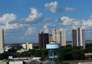 "Manhã de terça-feira em Campo Mourão, enfeitada pela caixa de água que já foi ponto de referência da cidade. Foi construída na década de 1960 e sua capacidade é de 190 mil metros cúbicos". Osvaldo Broza