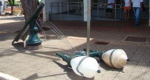 Av. Irmãos Pereira, esquina com a rua São Paulo. No centrão da de Campo Mourão, em frente à agência do banco Itaú, o poste republicano apareceu desse jeito. Aparentemente foi ato de vandalismo. E adivinhe quem é que paga a conta?...