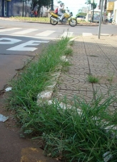 Na av. Capitão Índio Bandeira, esquina com rua São Paulo, o mato cresce até na brechinha entre o meio-fio e a calçada. E olha que esse é o centrão da cidade.