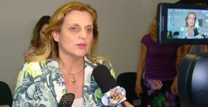 Regina Dubay (PR), prefeita de Camp Mourão, sobre a licitação para a decoração natalina ter sido marcada já no fim do ano; durante evento na pefeitura, quarta-feira.