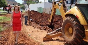 Olha aí a prefeita Regina Dubay "desfilando" pelas obras na cidade. No clic de sexta-feira, ela aparece na rua Sebastião Albino Ferreira, no jardim Flórida, que está recebendo as galeriais pluviais e em seguida será asfaltada. O investimento passa de R$ 300 mil e é bancado com aquela verba da venda das contas salários dos servidores. No mais, repare que a prefeita vai de salto e tudo pro meio do terrão. Tá pensando o quê!...