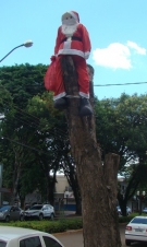Já tem de tudo pelas ruas de Campo Mourão com relação ao Natal. Até um Papai Noel que ficou no topo do que restou de uma árvore da av. Manoel Mendes de Carmargo. Ah, deve ser um protesto do "bom velhinho" para que não cortem mais árvores pela cidade...