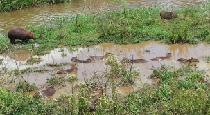 A foto é de Marcelo Reginaldo Alves e foi feita neste domingo, no Parque do Lago, em Campo Mourão. Daria até pra publicar numa daquelas revistas de passatempos do grupo "Coquetel", afinal, quantas capivaras aparecem no clic?...