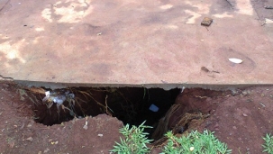 "Depois da chuvarada de segunda-feira, olha como ficou a calçada do Parque do Lago... As bocas de lobo entupidas com tanto lixo fizeram com que a água escoasse por cima do asfalto. Imagino que foi um "dilúvio" batendo no alambrado do parque...O que se via, e muito, flutuando nas águas barrentas do lago, eram garrafas pet... No mais, a imagem da cachoeira ficou bonita!" André L. Portes