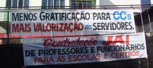 Servidores municipais estão concentrados em frente à prefeitura na tarde desta quinta-feira. Eles aguardam o resultado de uma reunião entre a prefeita Regina Dubay e a direção do Sindiscam. A categoria pede 12% de aumento e a administração oferece 9%. Na faixa, sobrou para os cargos comissionados, que têm gratificação sobre os vencimentos. Óh, vida!...