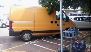 "Olha que achei em Campo Mourão! No espaço para motos o caminhão dos Correios. Isso foi na rua Edmundo Mercer, esquina com av. Manoel Mendes de Camargo".