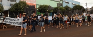 Professores da rede municipal de Nova Cantu fizeram nova passeata durante a semana. Desta vez o lema foi "luto pela educação" e a professorada foi às ruas vestindo roupas pretas. Também usaram bandeiras nessa cor. O magistério tem um calendário de protestos para pressionar a prefeitura. Se não forem atendidos, já tem greve marcada e tudo. Xiiiiiiii...