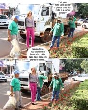 Os cliques são desta quinta-feira, quando a Regina Dubay foi ver ações na área central e Lar Paraná. Na av. Irmãos Pereira, ela vistoriou o plantio de flores nos canteiros centrais. Também conferiu a pintura de sinalização horizontal. Na rua João Vecchi (Lar Paraná), acompanhou a operação tapa-buracos e visitou o posto 24 horas. Olha aí, faltou o "vai visitar" no slogan de campanha...