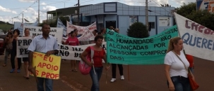 Professores municipais de Nova Cantu fizeram passeata, apitaço e mobilização em frente à prefeitura nesta quinta-feira. Entre outras coisas, a categoria cobra o piso nacional do magistério.