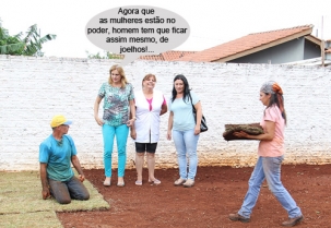 O clic é desta quarta-feira, quando a prefeita Regina Dubay esteve nos jardins Santa Cruz e Modelo. Ela visitou a creche Santa Cruz; a escola Nicon Kopko; posto de saúde, clube de mães Santa Cruz e centro de integração Esperança, onde está sendo realizado um trabalho de ajardinamento. E que fique claro: o homem está de joelhos só para plantar a grama, tá?...