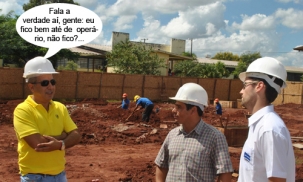 O clic é desta sexta-feira, quando o prefeito de Goioerê, Beto Costa, foi conferir o início das obras no novo bloco do câmpus da UEM. A construção deve ficar pronta em seis meses. São R$ 500 mil liberados pelo governo federal com uma mãozinha do deputado Hermes Frangão. No mais, "pancoso" o prefeito, não?...