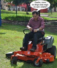 O clic é de Mamborê, onde o prefeito Nei Calori foi pessoalmente testar o trator cortador de grama adquirido pela prefeitura. O equipamento custou R$ 23 mil e será usado em praças e áreas públicas.