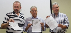 O prefeito de Boa Esperança, Cláudio Gotardo, aproveitou a presença dos deputados Douglas Fabrício (estadual) e Rubens Bueno (federal) e fez os dois assinarem o decreto que cria a “Carteirinha de Estacionamento” para Idosos e Portadores de Necessidades Especiais. O decreto foi anunciado por Gotardo durante prestação de contas dos dois parlamentares na cidade. Portanto, que fique claro: Bueno aparece segurando uma cópia do decreto, nada a ver com seus cabelos brancos...