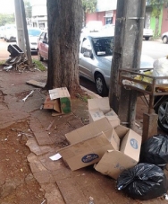 "Em pleno centro de Campo Mourão, na rua Araruna, a calçada vive cheia de lixo. Até parece que vivemos numa greve de garis".
