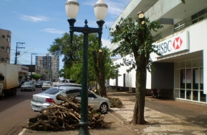 "Estas árvores foram podadas, como devem ser podadas outras árvores de nossa Campo Mourão. Com a poda a árvore revigora; fica linda; fornece sombra e principalmente oxigênio (fotossíntese). Respeitemos as árvores!" Fraterno Maria Nunes