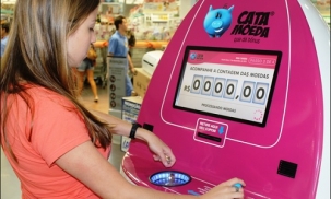 Para isso, o consumidor deposita as moedas numa máquina, que calcula o valor e emite um vale-compras com bônus.