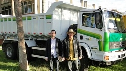 O prefeito Gilson Cassol (Barbosa Ferraz) fez pose ao lado caminhão do PAC 2, enquanto Nei Calori (Mamborê) não resistiu e até deu uma "guiada" no trucado.