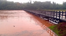 A chuva sem fim desta sexta-feira alagou o Parque do Lago de Campo Mourão. A antiga lanchonete (hoje usada por escoteiros) e a concha acústica ficaram debaixo da água. As fotos são do vereador Edson Battilani. O nível do Rio do Campo subiu tanto que por pouco o lago não atingiu até o pontilhão. Segundo do Simepar, choveu mais de 100 mm na cidade.