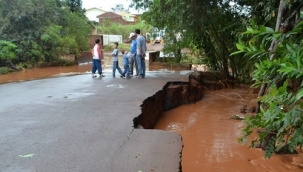 A chuva parou neste sábado e as águas dos rios do Campo e Km 119 começaram a baixar. Só que aí apareceram mais prejuízos. No jardim Araucária, por exemplo, parte do asfalto na cabeceira da ponte sobre o Rio de Campo se foi com a enxurrada. A foto é de Lídia Mizote, da Agenda 21.