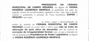 O pedido é assinado pelo procurador jurídico concursado da Câmara Ulisses Lima Takarada.