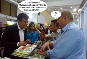 O clic é de Foz do Iguaçu, onde aconteceu no fim de semana o 2º Festival Internacional de Turismo. Um estande apresentou os roteiros turísticos da região. Até o governador Beto Richa passou por ele. O diretor de Turismo de Campo Mourão, Ruben Moyano, divulgou os pratos típicos da região, em especial o carneiro no buraco. Moyano, todo mundo sabe, é o mais mourãoense de los hermanos...