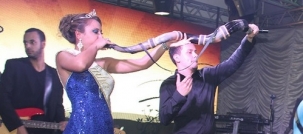 O jantar de lançamento da 24ª Festa Nacional do Carneiro no Buraco incluiu a tradicional coroação da rainha. Assim, Renata Kelly de Souza recebeu a faixa da rainha do ano passado, Rebeca Ferreira da Silva. E olha só o clic: a nova rainha não se intimidou diante do berrante. Ah, tá pensando o quê!...