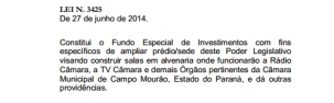 É a lei que cria o fundo para a Câmara ampliar sua sede visando a instalação de uma emissora de TV e outra de rádio.