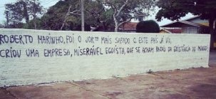 "Na av. João Bento, pixador usou o muro para fazer uma enorme frase de protesto contra a Globo e seu fundador". Jair