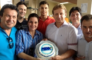 A Festa da Solidariedade, domingo, no Lar dos Velhinhos, incluiu o PSDB no leilão dos "bolos dos partidos". O bolo tucano foi arrematado pelo presidente da Codapar, Tino Stanizwski, que também é o presdente do "tucanato" de Campo Mourão. Digamos, que ele é do partido "desde criancinha"...