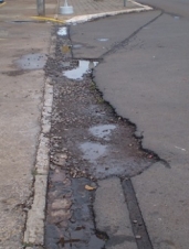 "Rua Mato Grosso, centro de nossa Campo Mourão. Lamentavelmente, o asfalto já está danificado; a fiação elétrica pode causar um acidente grave". Fraterno Maria Nunes